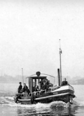 Links naast de zeilen de villa van steenfabrikant Th. G.J. Daams, die in 1899 samen met scheepsbouwer G.H. Bodewes en aannemer G.H. van Hezewijk de Lobithse Stoombootmaatschappij oprichtte, die een vaste stoombootverbinding onderhield met Nijmegen en Arnhem.