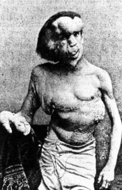 Joseph Merrick (Leicester, 5 augustus 1862 – Londen, 11 april 1890) was een Engelsman die bekend werd vanwege zijn afwijkende lichamelijk voorkomen en daar de naam The Elephant Man aan overhield. Aan het begin van zijn leven zag hij er als een gewone jongen uit, maar tussen zijn derde en vijfde levensjaar veranderde dat. Als eerste viel op dat zijn armen niet gelijkmatig groeiden en dat zijn voeten opmerkelijk groot werden. Zoals in die tijd niet ongebruikelijk werd als verklaring voor deze vreemde afwijkingen gekeken of zich geen opvallende gebeurtenis tijdens de zwangerschap had voorgedaan. Volgens het volksgeloof konden baby’s ernstige misvormingen oplopen wanneer hun moeder tijdens de zwangerschap erg schrok. Volgens de familie Merrick was dat in dit geval ook gebeurd, want moeder Mary Jane zou toen ze vier maanden zwanger was van Joseph namelijk door een kermisolifant omver zijn geduwd en daar heftig van zijn geschrokken. Joseph Merrick zou zijn leven lang geloofd hebben dat dit de oorzaak was van zijn ziekte. Aan de rechterkant van zijn gezicht en lichaam begonnen in snel tempo bulten te groeien. De artsen die hem onderzochten gingen ervan uit dat hij aan de zeldzame aandoening elefantiase ofwel olifantsziekte leed, die wordt veroorzaakt door parasieten en bij een deel van de patiënten lijdt tot een dikker wordende huid, heftige pijnen en overmatige zwelling in de armen, benen of geslachtsdelen. Bijna altijd zorgen de veranderingen in het lichaam ervoor dat personen met deze ziekte sociale en economische problemen krijgen. Dat was ook bij Merrick het geval, want door zijn misvorming raakte hij geïsoleerd van normale omgang met kinderen en kon hij nauwelijks nog naar school aangezien hij zwak was en gepest werd. De meeste mensen vonden hem te afschrikwekkend om naar te kijken. De artsen konden niets voor hem doen en Merrick werd al snel door zijn omgeving uitgestoten. (meer…)