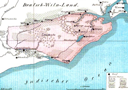 Vroeger had het keurvorstendom Brandenburg-Pruisen bescheiden koloniën en handelsposten in de Caraïben en Afrika, maar deze waren na een twintigtal jaar allemaal opgedoekt, maar het keurvorstendom kwam door ze kortstondige overzeese avonturen wel terecht op een bescheiden lijstje van achttien koloniale mogendheden. Vanaf 1871 toen het Duitse Keizerrijk ontstond kreeg men weer opnieuw koloniale ambities (zie Duitse Koloniën 2), maar vooralsnog richtte Duitsland zich, net als andere Europese landen met territoriale ambities, vooral op ‘de zieke man van Europa‘, het Osmaanse Rijk. In 1878 werden door Otto von Bismarck tijdens het Congres van Berlijn op een handige manier afspraken gemaakt. Nadat de zaken in Europa opgelost leken (‘leken’, want tot op de huidige dag levert de verdeling van landen en regio’s een breed scala van conflicten op en het eind is nog lang niet in zicht), achtte Duitsland het tijd hun ‘rechtmatige plaats onder de zon’ veilig te stellen. Via de Koloniale Conferentie in 1884-1885 werden afspraken gemaakt over de verdeling van de witte plekken in Afrika en tegelijkertijd nog wat gebieden in Azië onderling verdeeld. Duitsland zou tien koloniën in Afrika en Azië toegewezen krijgen, waarvan in Duitse Koloniën 3 de eerste Afrikaanse kolonie, Duits-Zuidwest-Afrika, aan de orde is geweest. In Duitse Koloniën 4 kwam Togoland, een andere Duitse kolonie op het Afrikaanse continent, aan bod en in Duitse Koloniën 5 werd Duits-Oost-Afrika besproken. In dit blog: Duits-Witu.