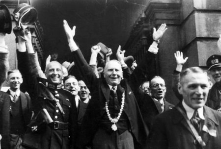 De Duitse delegatie keerde na de ondertekening van de capitulatie op 4 mei meteen naar Flensburg terug (zie: Bevrijding van Nederland en België 1). Flensburg lag binnen de Britse bezettingszone, maar de geallieerden ondernamen geen stappen om de regering te arresteren. President Dönitz regeerde na de capitulatie dus onverdroten voort als hoofd van een marionettenregering. De regering-Dönitz deed zelfs nog een onderzoek in naar de ‘misstanden’ in de concentratiekampen. Men had ook de Hitlergroet in het leger afgeschaft, maar tegelijk bleven Dönitz’ militaire rechtbanken doodvonnissen uitspreken en uitvoeren. Pas op 13 mei 1945 arresteerden de Britten veldmaarschalk Wilhelm Keitel wegens zijn betrokkenheid bij de executie van vijftig Britse krijgsgevangen gemaakte luchtmachtofficieren. Keitel zou later bij het Proces van Neurenberg ter dood worden veroordeeld en worden opgehangen. Na Keitels arrestatie werd kolonel-generaal Alfred Jodl benoemd tot (laatste) stafchef van het Duitse opperbevel. Ook die zou op 16 oktober 1946 aan de Neurenbergse galg eindigen. (meer…)